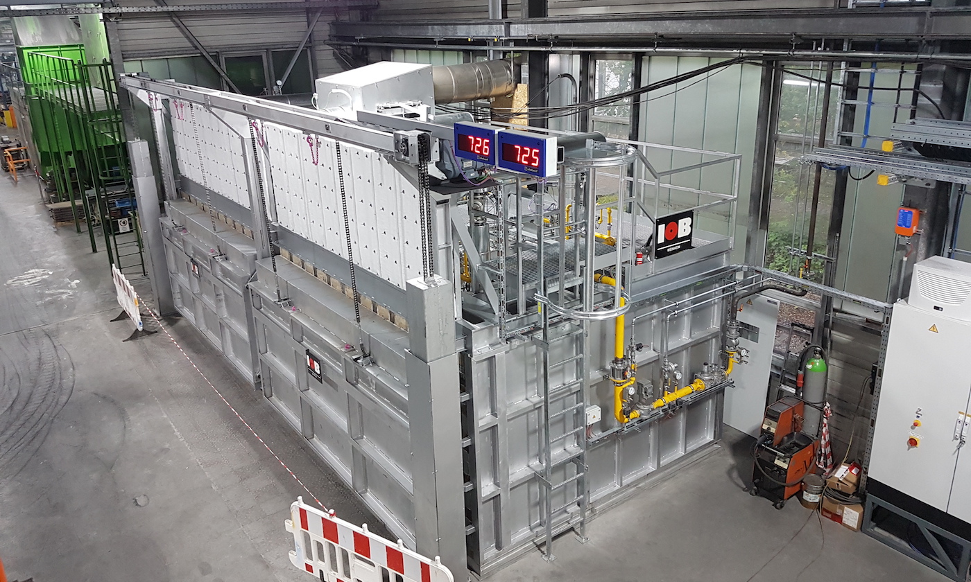 Für die vollautomatische Vergütung von Schmiedestücken in kontinuierlichem Ablauf.Brammen Ø 300 mm - 650 mm, Brammenhöhe bis 1300 mm, Stückgewicht bis 3100 KG.