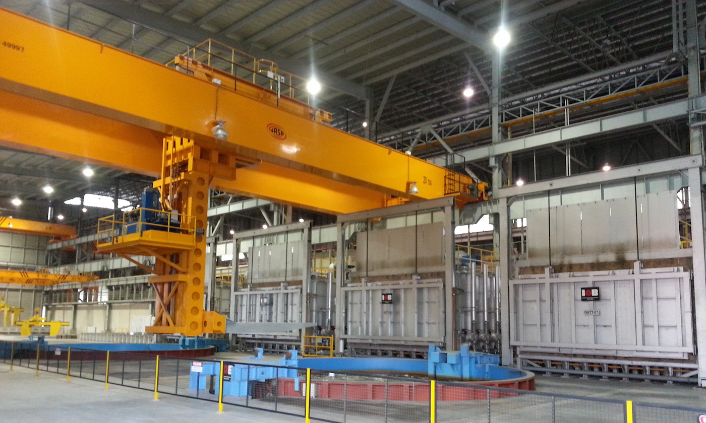 Doppelstock-Vergüteanlage: 3 Vergüteöfen, Pufferlager, Chargiermaschine, 2 Isothermkammern, Be- und Entladevorrichtung